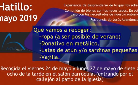 Recogida de ropa y alimentos el 24 de mayo y el 27 de mayo de 2019. Después de la experiencia solidaria realizada en la undécima cena Fraternidad con África, nos propusimos continuar esta solidaridad con nuestros hermanos más cercanos. Para ello nos propusimos desprendernos de aquello que nos sobra en […]