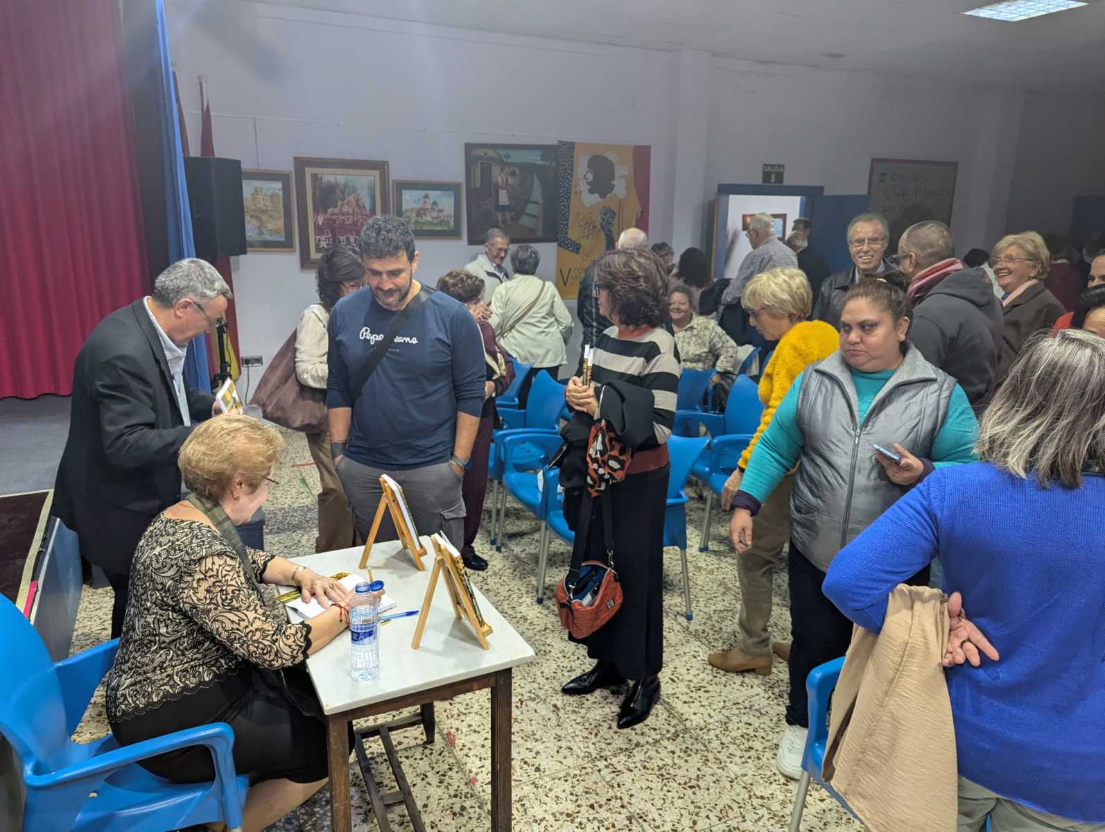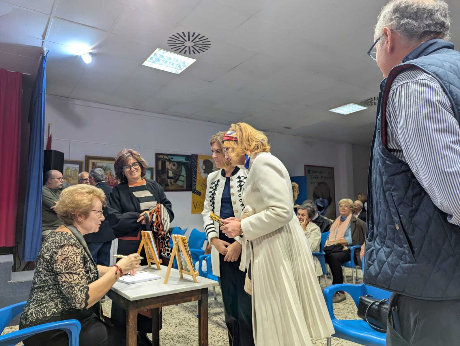 Durante el acto nos explicó el cambio experimentado en su vida desde que siendo niña empezó a escribir poemas. En su madurez y animada por sus amigos, entre los que nos encontramos, publicó su primer libro de poesías y con él su salida hacia escenarios variados. Ha declamado en multitud de centros culturales, de mayores y de la mujer, son varias sus entrevistas en radio y prensa y allí donde va siempre es requerida para que comparta su gran don de la declamación.