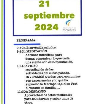 Con gran alegría nos hemos encontrado en el colegio Ntra. Sra. De la Consolación de Espinardo, cuarenta personas de las cinco comunidades locales del Movimiento de los Focolares de la Región de Murcia para el inicio del curso. Y es que no han faltado las incidencias, programas alternativos y dificultades, […]